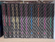 One of my favorite sets from all over the world is this one right here - this softcover set is fantastic. All 7 books were released in 7 lovely colors. The side edges are also sprayed a deep black, which was not common until 2024 when many other publishers, the US publisher Scholastic included, have started doing this as way to dress up their books.
